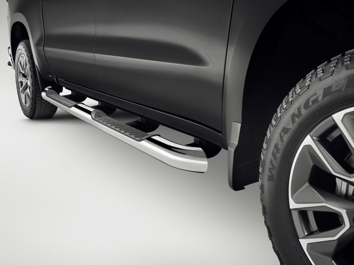 Equip your Silverado 1500 with these Chevrolet Accessory Assist Steps to make it easier to enter and exit your truck. Also known as step bars or side steps, these assist steps feature a rugged aluminum construction that enhances your vehicle's styling with a production look. Integrated traction pads with molded plastic grooves provide safe, sturdy stepping surfaces.